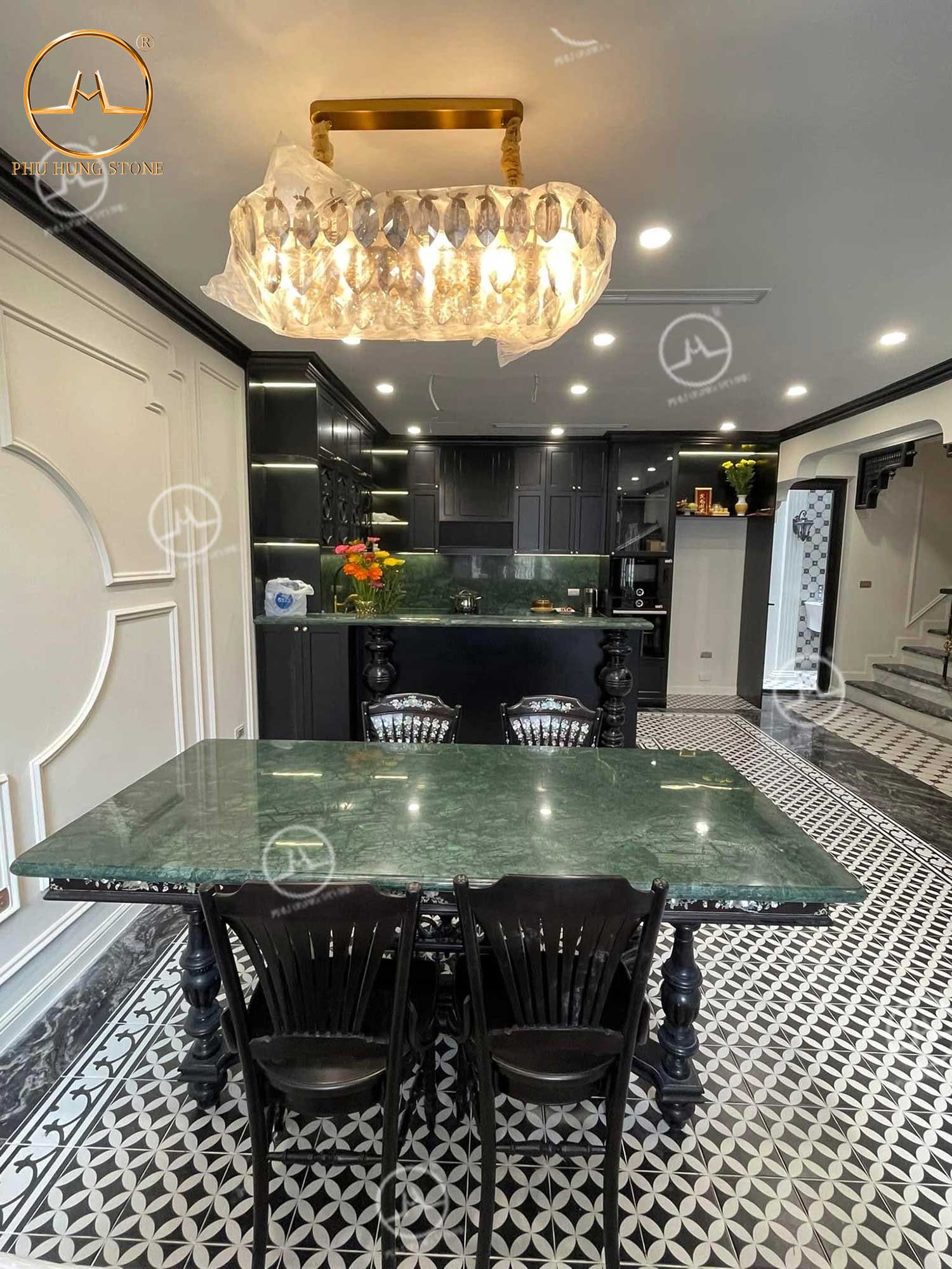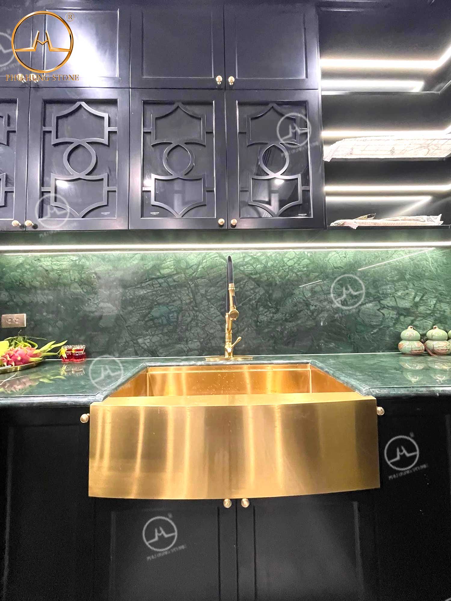 +/ Đá mặt bếp màu xanh với các tone màu xanh từ xanh ngọc, xanh rêu, xanh biển, xanh lá, xanh dưa hấu,… tạo hiệu ứng khác biệt, độc đáo. Đồng thời, đá bếp màu xanh sở hữu tone màu tự nhiên, là điểm nhấn tuyệt vời, mang vẻ đẹp sang trọng và đẳng cấp cho không gian phòng ăn nhà bếp.