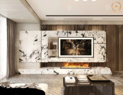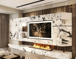 - Đá ốp vách tivi: Không chỉ được ứng dụng làm tranh đá trang trí, mẫu đá Alpinus White còn được sử dụng làm đá ốp vách tivi khu vực phòng khách tạo điểm nhấn cho căn phòng, gia tăng vẻ đẹp sang trọng và đẳng cấp cho ngôi nhà.