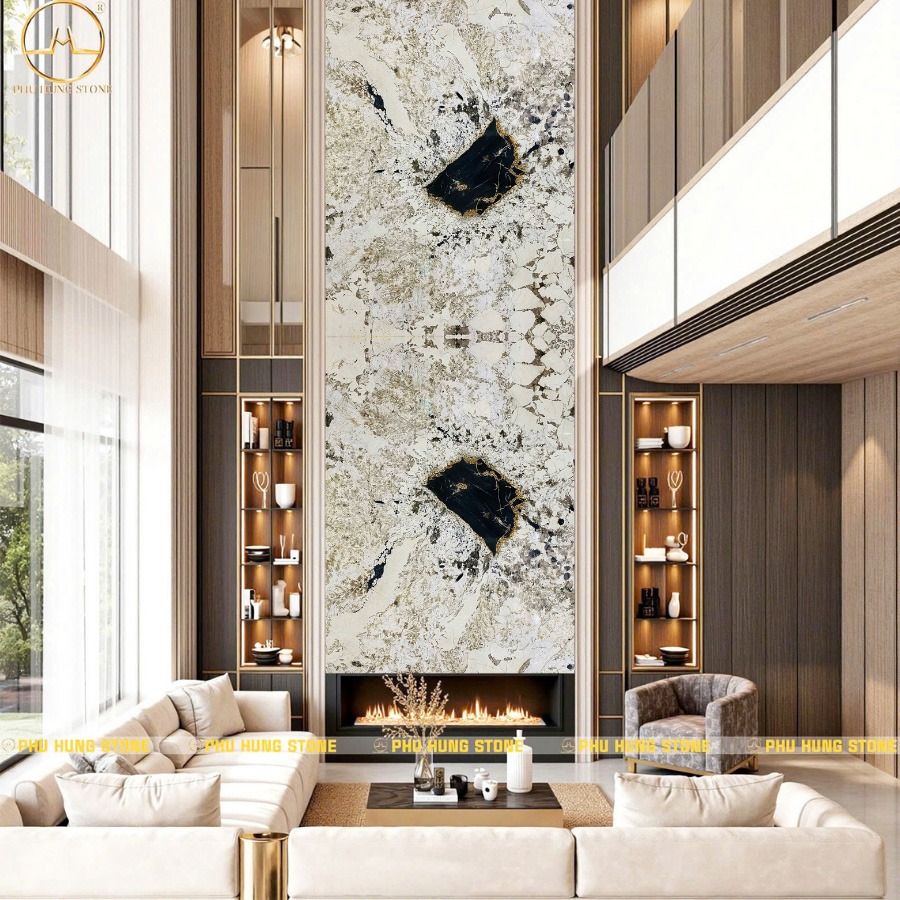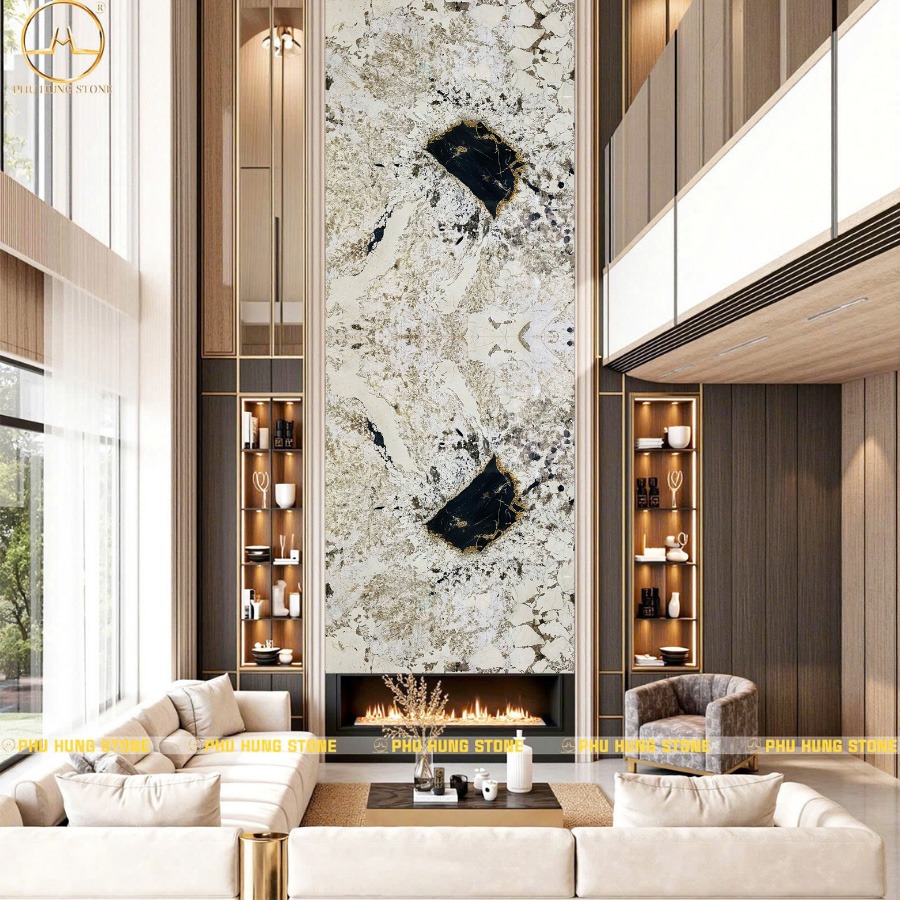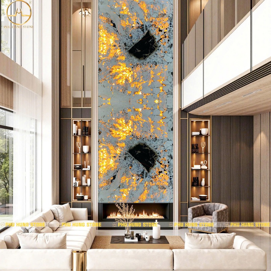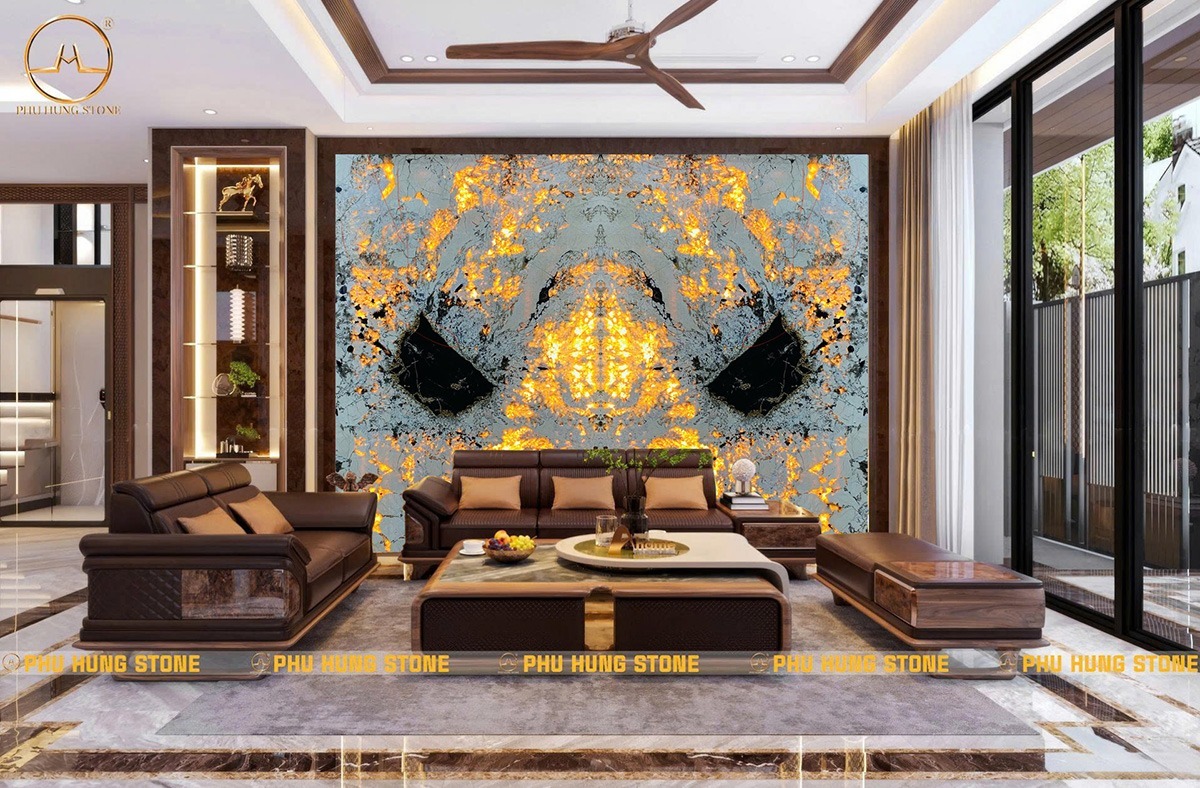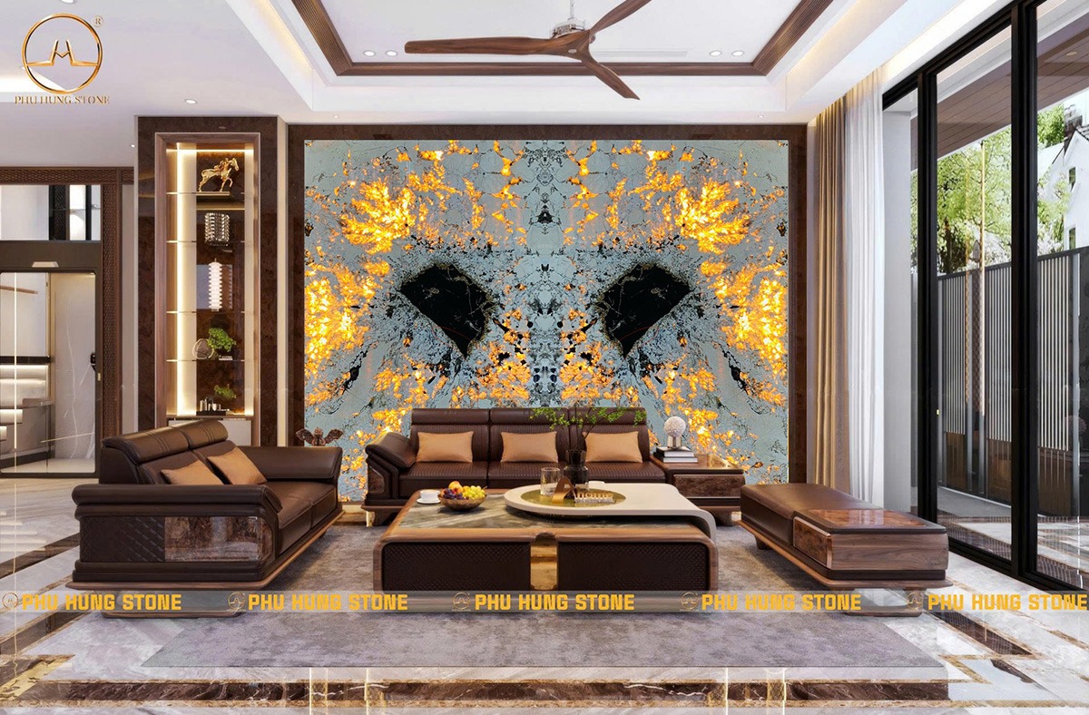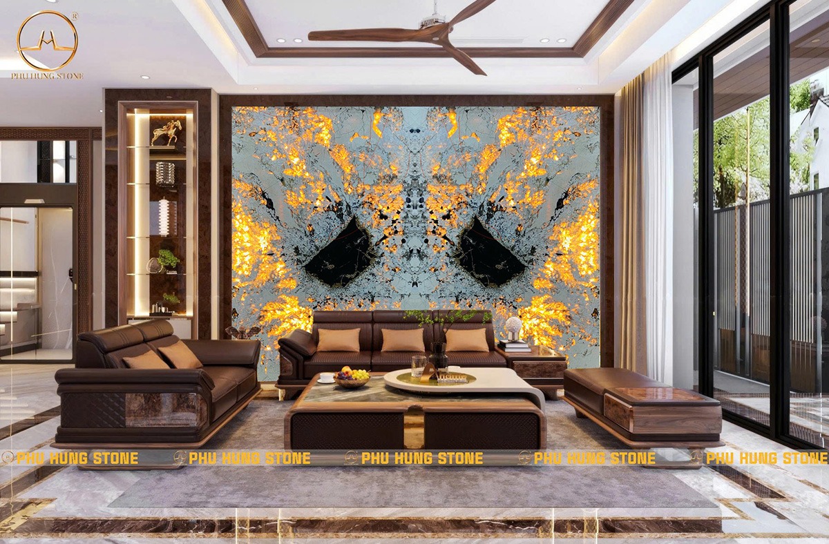 Loại tranh đá đối xứng vân xuyên sáng này thường được ứng dụng cho:
