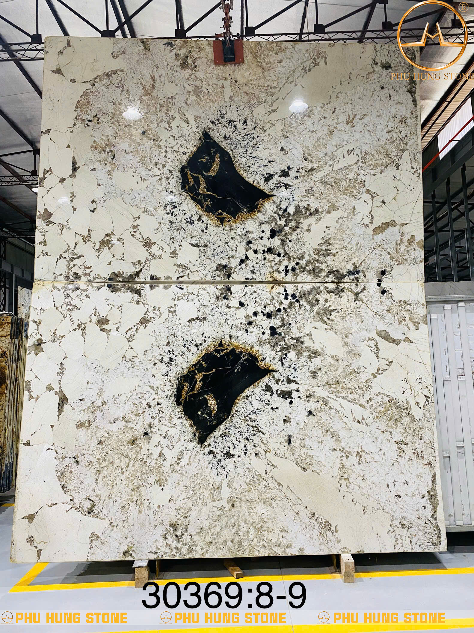 - Màu sắc: So với Alpinus White 1 có sắc trắng sáng nhẹ, Granite Alpinus White 2 lại mang tông trắng ngà ấm, và có 1 điểm nhấn nổi bật màu đen ở chính giữa tấm đá. Chính sự pha trộn này khiến bề mặt đá vừa có chiều sâu, vừa tạo cảm giác sang trọng, phù hợp cho cả không gian cổ điển và hiện đại.