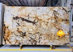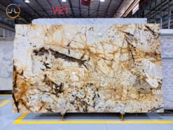 - Màu sắc: Mẫu đá sở hữu tone màu trắng – vàng – nâu đen hòa quyện tạo nên một tấm slap đá mang vẻ đẹp độc đáo và cuốn hút