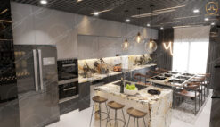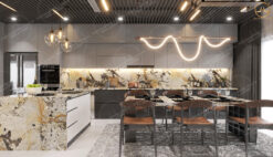 - Đá ốp bếp: Mẫu đá hoa cương tự nhiên Copenhagen không chỉ ứng dụng làm tranh trang trí mà còn được sử dụng để ốp bếp các vị trí tường bếp, mặt bếp, bàn đảo bếp,… mang vẻ đẹp ấn tượng và độc đáo. Với các đặc tính độ cứng tốt, độ bền cao, tính chống thấm và chịu nhiệt tốt, đá granite Copenhagen là sự lựa chọn hoàn hảo để ốp bếp.