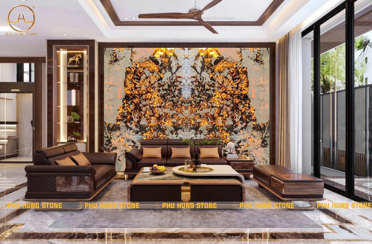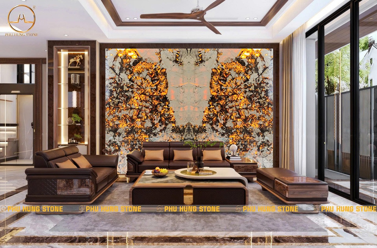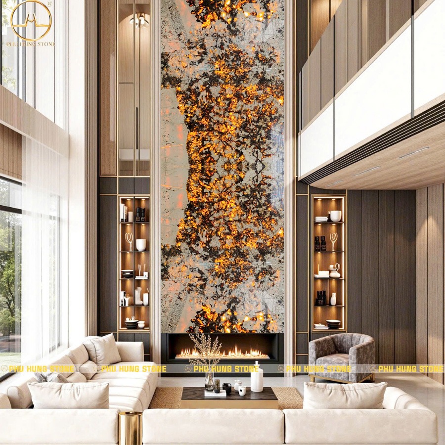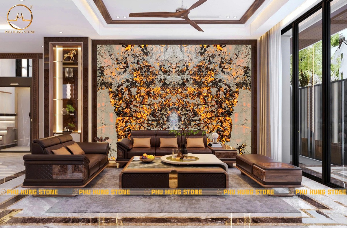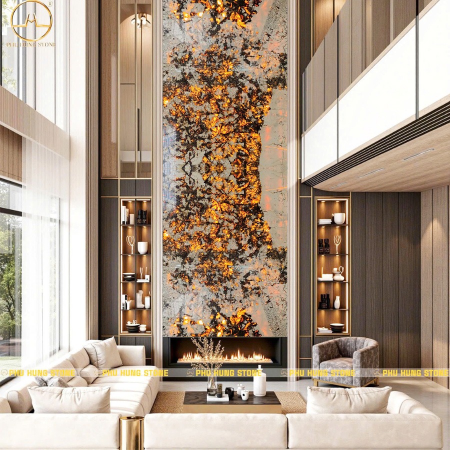 - Khả năng xuyên sáng: Khi được chiếu đèn LED phía sau mẫu đá có thể xuyên sáng tạo hiệu ứng ánh sáng độc đáo ứng dụng trong nhiều hạng mục trang trí và ốp lát sang trọng.