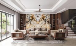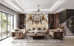 - Tranh đá: Với hệ vân độc đáo và cuốn hút, mẫu đá vàng bạch dương khi ghép đối xứng vân cho ra hình ảnh đẹp tuyệt vời, ấn tượng và cuốn hút vô cùng giúp trang trí đẹp cho không gian phòng khách, khu vực tiếp khách cũng như các không gian sảnh chờ, nhà hàng, khách sạn, quầy lễ tân,… Dưới đây là một số hình ảnh thiết kế 3D tranh đá đối xứng vàng bạch dương xin mời quý vị tham khảo: