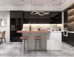 - Đá ốp bếp: Lựa chọn mẫu đá cẩm thạch trắng Quảng Tây ốp bếp mang vẻ đẹp hiện đại và sang trọng cho các khu vực tường bếp, mặt bếp, bàn đảo bếp, bàn ăn,… phối hợp với các tone màu đen, màu xám, màu gỗ,… của nội thất phòng ăn nhà bếp.