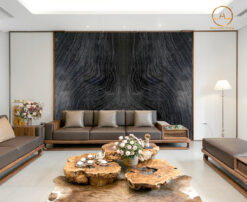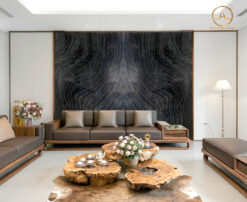 - Mặt bàn trà: Mẫu đá vân gỗ cổ màu đen vân đẹp có thể phối hợp cùng các mẫu đá khác làm thành mặt bàn đẹp sang trọng và tinh tế. Mẫu đá được dùng để làm mặt bàn đảo bếp, bàn ăn, bàn trà, bàn làm việc,….