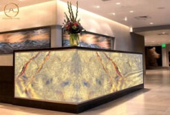 Các mẫu tranh đá onyx trắng tự nhiên được lựa chọn để trang trí phòng khách, khu vực tiếp khách, ốp vách tivi,… sảnh chờ, chiếu nghỉ,… văn phòng làm việc,… đẹp sang trọng. Đây là hình ảnh bức tranh xuyên sáng đẹp tuyệt vời trang trí không gian nội thất cao cấp.
