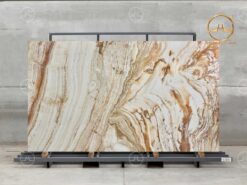 Đá onyx vân gỗ nhập khẩu mang vẻ đẹp sang trọng và ấm áp cùng các đường vân tinh tế, mềm mại được sắp xếp như tấm gỗ tự nhiên nên tên gọi của chúng bắt nguồn từ đặc điểm hệ vân. Đá ngọc vân gỗ tạo nên một cảm giác gần gũi và thân thuộc, mộc mạc và bình dị nhưng cũng rất hiện đại và đẳng cấp.