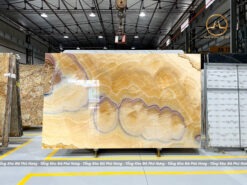 Đá Onyx Honey Xuyên Sáng nhập khẩu có màu vàng đặc trưng, lớp tinh thể xuyên sáng vân mây màu mật ong vô cùng hoàn hảo.