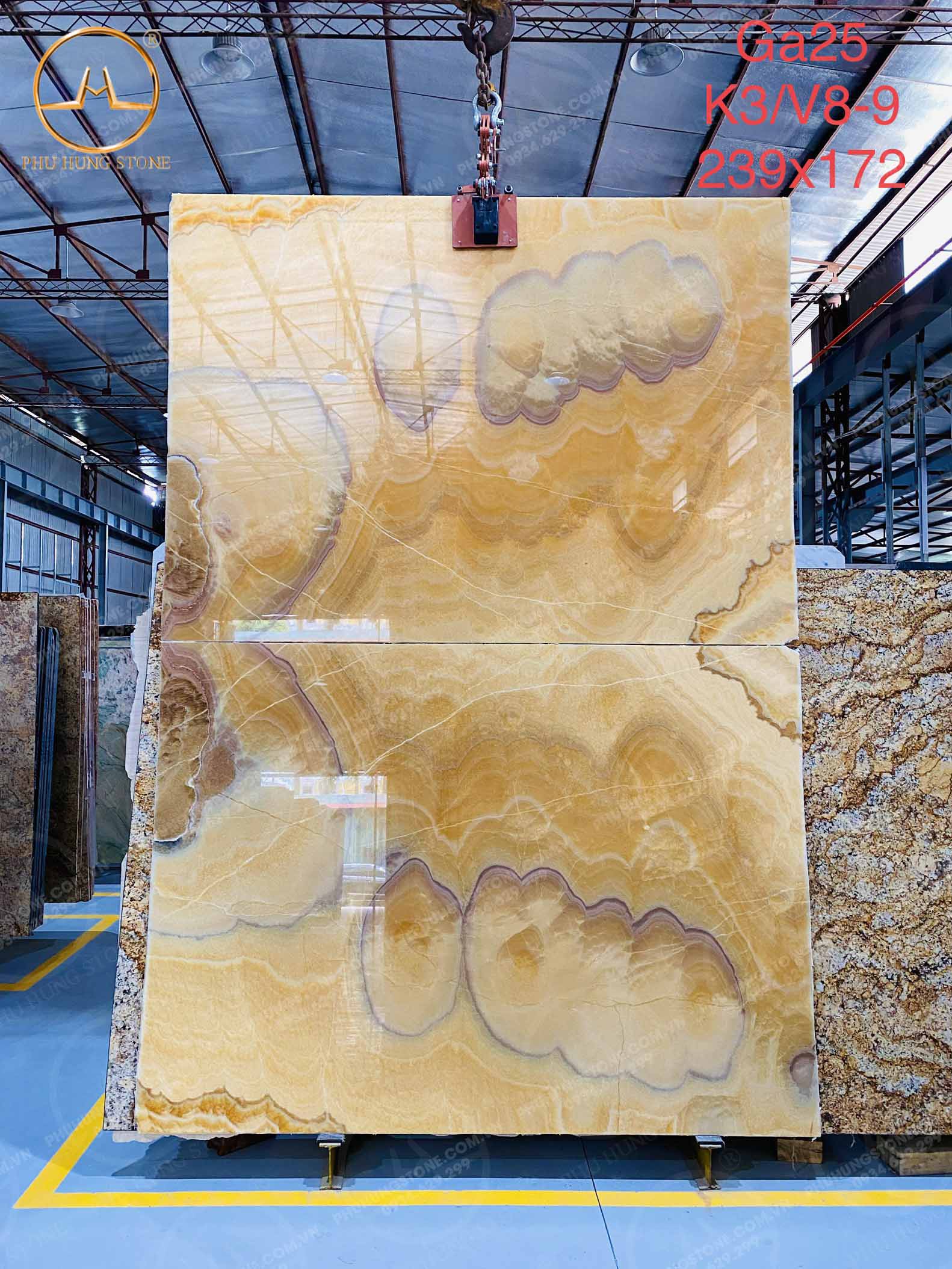 Đá Onyx Honey Xuyên Sáng nhập khẩu có màu vàng đặc trưng, lớp tinh thể xuyên sáng vân mây màu mật ong vô cùng hoàn hảo.