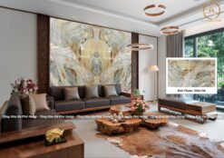 - Tranh đá quartz dragonbay được ghép vân đối xứng theo nhiều kiểu cho ra mẫu tranh đá đẹp sang trọng, thể hiện đẳng cấp của Gia Chủ, thường dùng để trang trí vách tivi phòng khách, mặt sảnh,…