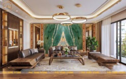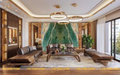Mẫu đá quartz xanh còn được ứng dụng làm mặt bàn tiếp khách, bàn decor phối hợp trong không gian phòng khách, khu vực tiếp khách, sảnh tiếp đón của những nơi sang trọng và đẳng cấp.