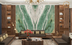 - Tranh đá đối xứng vân sử dụng đá Fuchsite Crystal mang vẻ đẹp nổi bật và độc đáo với nhiều kiểu ghép đối vân tạo nên các mẫu tranh trang trí dành cho các không gian nội thất cao cấp.