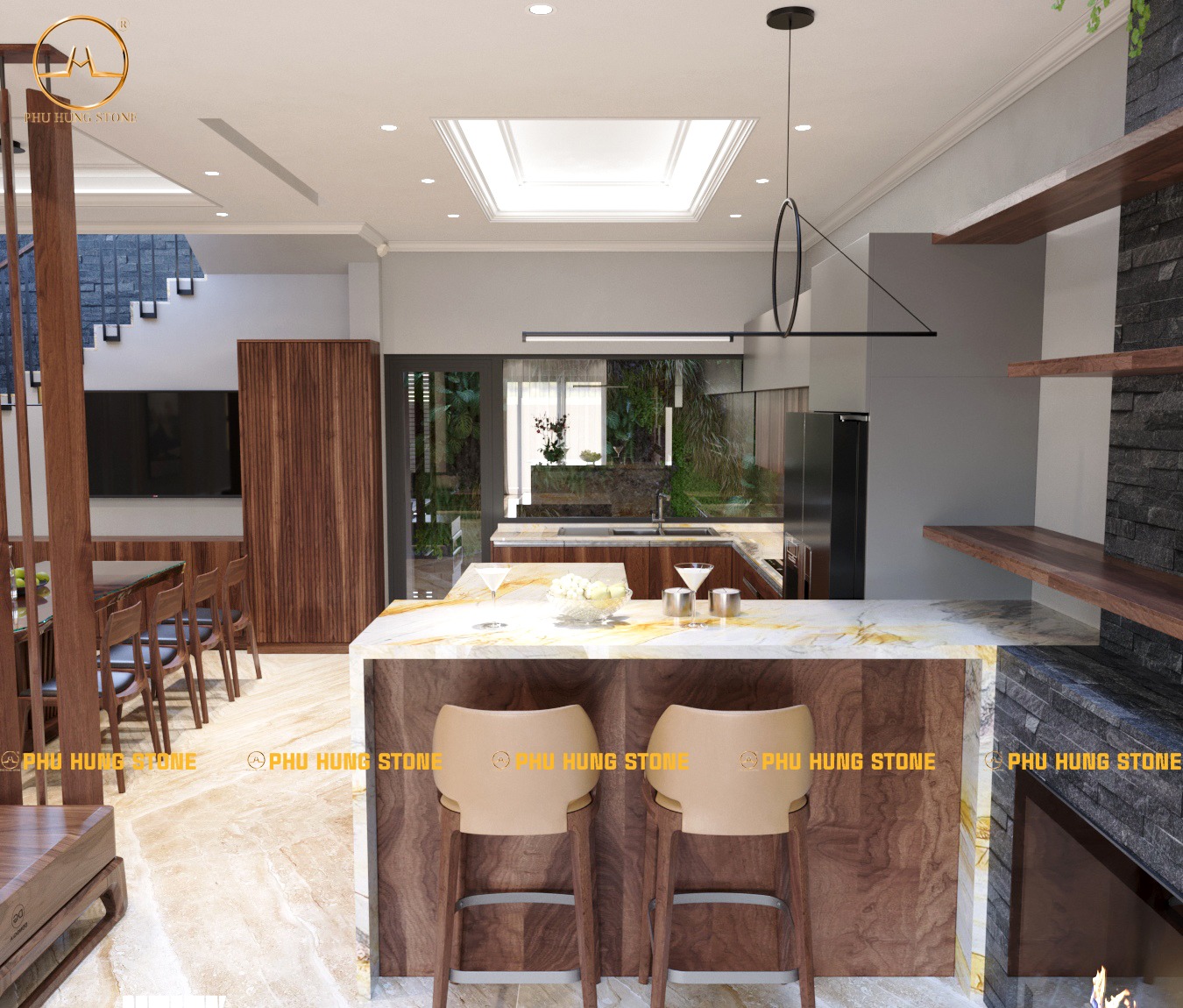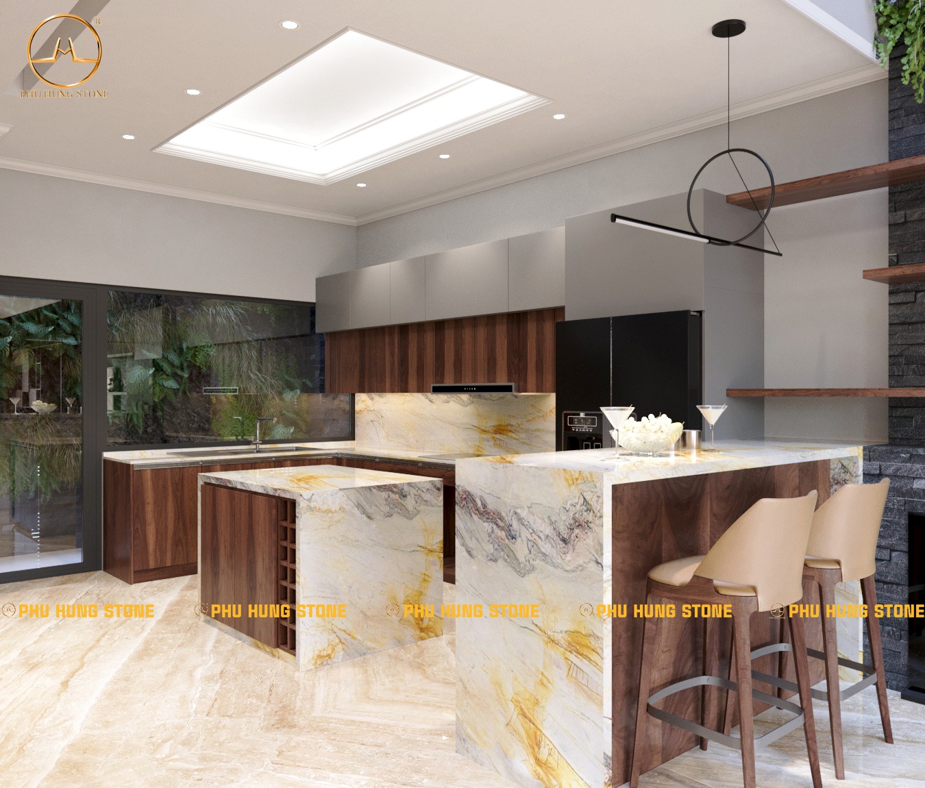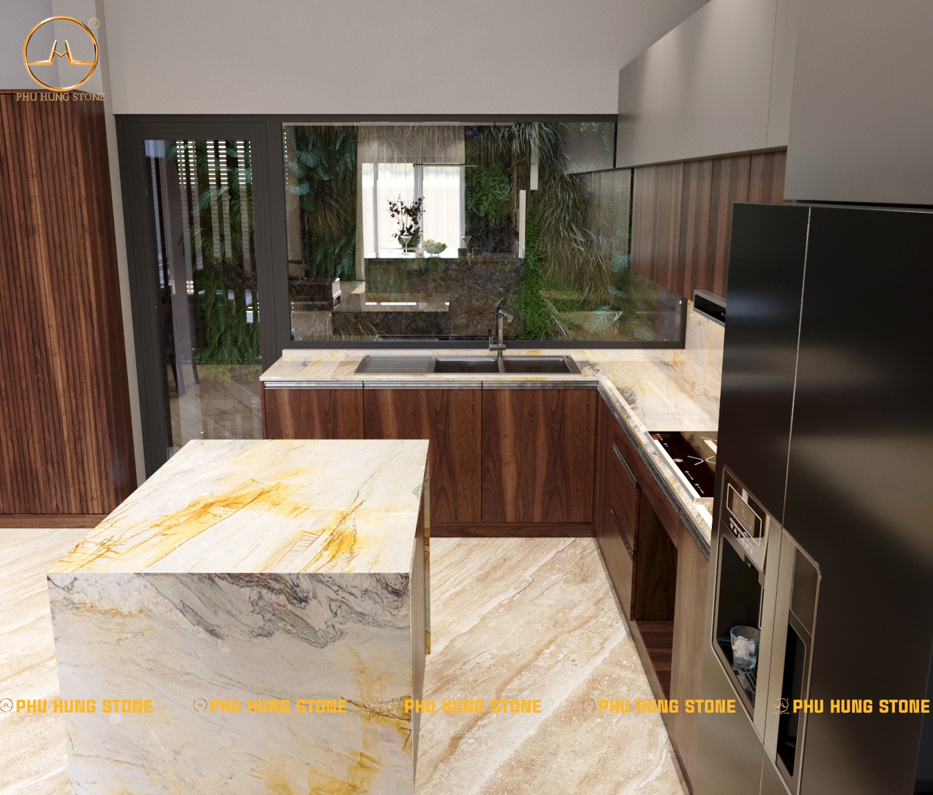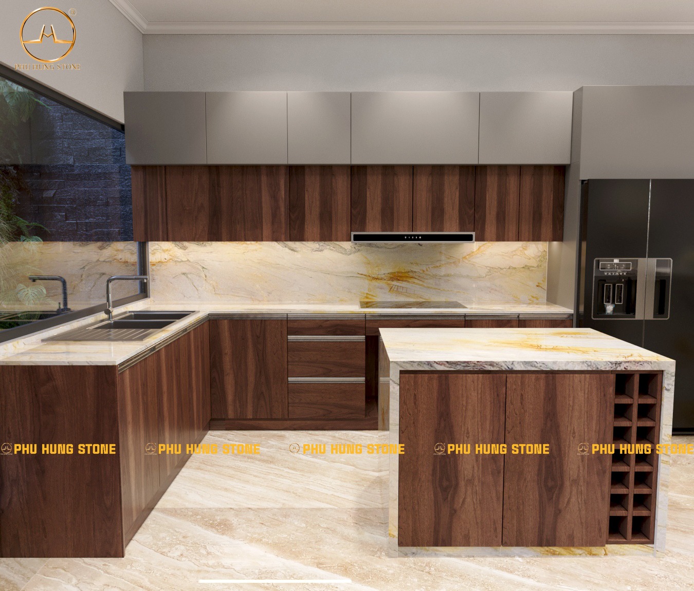 4.2. Đá ốp bếp và làm mặt bàn đảo bếp