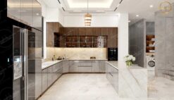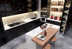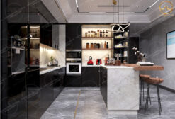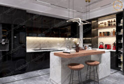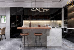 - Đá ốp bếp: Dòng đá quartz thạch anh luôn được ưa chuộng để ốp bếp và làm bàn đảo bếp, bàn ăn bởi tính chống thấm cao, độ bền tốt, chịu lực và chịu nhiệt tốt. Nếu yêu thích không gian phòng ăn nhà bếp có tone màu trắng sáng thì quý vị hãy tham khảo ngay mẫu quartz Zurich dưới đây với một số hình ảnh thiết kế 3D như sau: