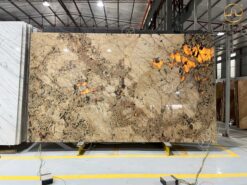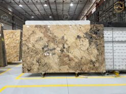Mô tả chung: Đá Alaska Gold là loại đá granite màu vàng tự nhiên được cấu thành từ thạch anh và fenspat do quá trình chuyển hóa dung nham kết tinh lại dưới bề mặt Trái Đất. Điểm đặc trưng của loại đá này chính là màu vàng kết hợp hài hòa với các đường vân dạng vảy lớn màu đen và hồng nhạt phân bổ không đồng đều trên bề mặt đá để tạo nên vẻ đẹp riêng biệt, ấn tượng.