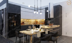 - Đá ốp bếp: Lựa chọn đá Alaska Gold ốp bếp mang đến vẻ đẹp sang trọng và nổi bật cho không gian phòng ăn nhà bếp với tone nền màu vàng cùng hệ vân màu đen điểm xuyết trên toàn bộ bề mặt tấm đá. Mẫu đá này được sử dụng để ốp các vị trí tường bếp, mặt bếp, mặt bàn đảo bếp, mặt bàn ăn,… vừa có độ cứng cao, độ bền tốt lại dễ vệ sinh, khả năng chống thấm, chịu lực và chịu nhiệt tốt.