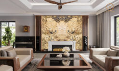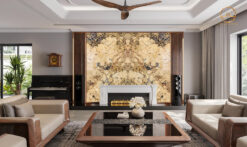 - Tranh đá: Mẫu đá Alaska Gold có khả năng xuyên sáng tuyệt vời cùng hệ vân đen độc đáo được ứng dụng làm tranh đá đối xứng vân khi ghép 2 tấm đá lại với nhau tạo nên những hình thù, họa tiết hoa văn đẹp mắt. Đặc biệt, khả năng xuyên sáng sẽ giúp cho bức tranh có hiệu ứng ánh sáng cuốn hút, mang đến vẻ đẹp cực kỳ sang trọng và đẳng cấp.