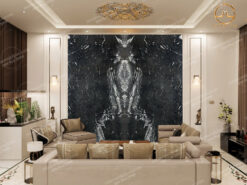 - Tranh đá: Với hệ vân uốn lượn độc đáo, mẫu đá Laguna Black được ứng dụng để ghép tranh đối xứng vân đẹp cuốn hút trang trí khu vực tiếp khách, không gian phòng khách,… đẹp sang trọng. Tùy theo cách sắp xếp 2 tấm đá với nhau sẽ tạo ra bức tranh có hình thù, họa tiết hoa văn khác nhau, độc nhất vô nhị.