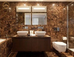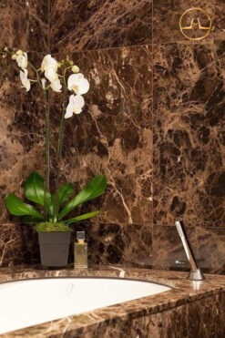 Đá Marble Nâu Đậm Dark Emperador có màu nâu đậm nhạt đặc trưng bóng sáng tinh tế. Màu sắc sang trọng được ưa thích thi công nhiều hạng mục quan trọng và cao cấp.