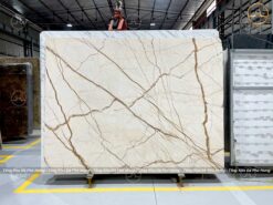 Đá Marble Sofita nhập khẩu có màu trắng ngà xen kẽ lớp chỉ vàng sang trọng. Đá marble Sofita mang vẻ đẹp sang trọng và tinh tế với tone màu kem ấm áp chủ đạo, điểm xuyết những đường vân nâu vàng uyển chuyển. Mẫu đá Sofita tạo nên một không gian sống động và cuốn hút kết hợp bề mặt đá mịn màng, sáng bóng mang đến cảm giác rộng rãi và thoáng đãng cho căn phòng.