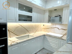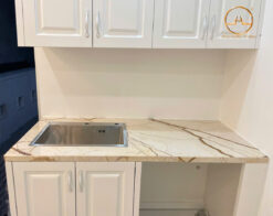 - Đá ốp bếp : Đá cẩm thạch tự nhiên Sofita sử dụng ốp bếp mang đến vẻ đẹp hiện đại và sang trọng, tạo điểm nhấn tuyệt vời cho không gian phòng ăn nhà bếp với hệ vân màu nâu nhạt đan xen đẹp mắt. Đá cẩm thạch Sofita ứng dụng ốp mặt bếp, tường bếp, làm mặt bàn đảo bếp, bàn ăn,… đẹp sang.