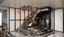 Mẫu đá marble cẩm thạch tự nhiên Xám Ý ứng dụng ốp cầu thang mang vẻ đẹp hiện đại, sang trọng và tinh tế đến không gian nội thất của bạn. Đây là mẫu đá tự nhiên rất được yêu thích và ưa chuộng để làm cầu thang trong nhà, ngoài trời,… phù hợp với nhiều phong cách thiết kế cho nhà dân, khu chung cư,…