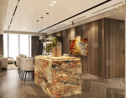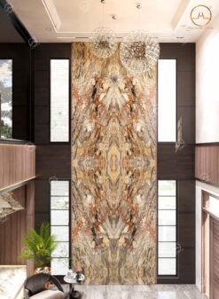 - Tranh đá thông tầng: Mẫu đá thạch anh Paradise không chỉ được ghép đối xứng vân 2 tấm mà còn được sử dụng để ghép 4 tấm làm tranh đá thông tầng đẹp sang trọng sử dụng cho các không gian nội thất cao cấp như các căn hộ Duplex, biệt thự, trung tâm thương mại, khách sạn, nhà hàng đẳng cấp thời thượng.