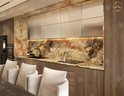 - Đá ốp bếp Thạch Anh Paradise đẹp nổi bật tạo điểm nhấn cho khu vực bếp, phòng ăn nhà bạn. Đá thạch anh nổi tiếng là dòng đá tự nhiên được yêu thích và ưa chuộng để ốp bếp, làm bàn đảo bếp, bàn ăn với khả năng chống thấm tốt, chịu nhiệt chịu lực tốt, độ bền cao,… đáp ứng mọi tiêu chí của đá ốp bếp chất lượng.