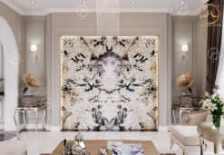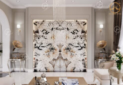 Vì vậy, mẫu đá Granite Phoniex White được ghép thành tranh đối vân đối xứng trang trí đẹp cho nhiều không gian nội thất.