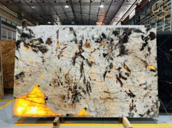 Đặc biệt, mẫu đá hoa cương này còn có mảng xuyên sáng nằm ở phía góc và vô số các điểm xuyên sáng khác nữa tạo hiệu ứng đẹp mắt.