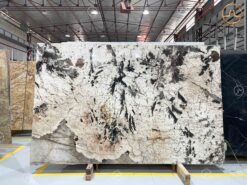 - Vân đá: Hệ vân sắp đặt dày khít khắp bề mặt mẫu đá và cực kỳ nổi bật với những tone màu đen và có mảng xuyên sáng.