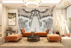 Đây là hình ảnh ghép tranh đối xứng vân 2 tấm khi chưa được chiếu xuyên sáng cho ra hình ảnh đẹp mắt và ấn tượng sử dụng cho nhiều không gian nội thất từ hiện đại đến tân cổ điển.