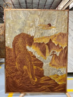 Vẻ đẹp độc đáo từ các vân đá tự nhiên cùng hiệu ứng xuyên sáng tạo chiều sâu sống động, làm cho hình ảnh con báo hoa mai trở nên chân thực và đầy sức sống.