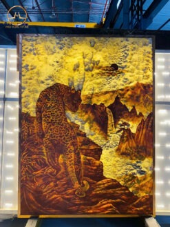 Tranh đá Onyx điêu khắc hình con báo hoa mai xuyên sáng là một tuyệt tác nghệ thuật đỉnh cao, kết hợp hoàn hảo giữa vẻ đẹp thiên nhiên và sự khéo léo của bàn tay con người.