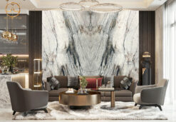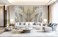 Sự hòa quyện của màu xanh rêu trầm lắng đan xen với những vệt trắng, xám hoặc thậm chí là nâu nhạt, tạo nên một hiệu ứng thị giác đa tầng và cuốn hút. Những đường vân đá uốn lượn tự do, mạnh mẽ như những dòng chảy ngầm hay những cành cây vươn mình trong rừng rậm. Với vẻ đẹp ấn tượng như vậy, chắc chắn bức tranh sẽ tạo điểm nhấn tuyệt vời cho không gian nội thất của bạn.