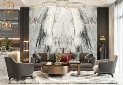 Mẫu tranh đá Amazon Forest được ghép đối xứng vân từ 2 tấm quartz Amazon Forest khổ lớn tạo nên bức tranh có hình thù và họa tiết hoa văn độc đáo, ấn tượng. Đặc trưng mẫu đá Amazon Forest đã mang một vẻ đẹp hoang dã, gợi nhớ đến khu rừng nhiệt đới Amazon huyền bí, vì thế bức tranh này cũng sở hữu vẻ đẹp đó.
