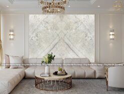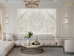 Mẫu đá thạch anh màu trắng quartz Zurich được ghép đối xứng vân làm tranh đá trang trí không gian đẹp sang trọng. Với hệ vân đơn giản mà tinh tế, tranh đá Zurich mang đến vẻ đẹp sang trọng, hiện đại và đầy quý phái. Từ 2 tấm đá ghép đối xứng vân sẽ đảo chiều ghép thành các kiểu tranh đá dưới đây được phối hợp với không gian nội thất phòng khách hiện đại: