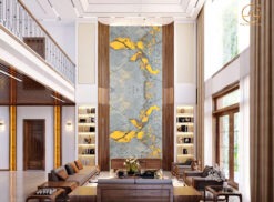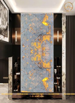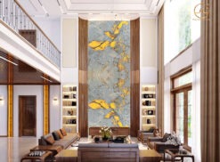 Tranh đá thông tầng granite Alabaster có tone nền màu trắng và hệ vân đen nổi bật, đây là mẫu đá tự nhiên có khả năng xuyên sáng nên được ứng dụng rất nhiều trong trang trí nội thất.