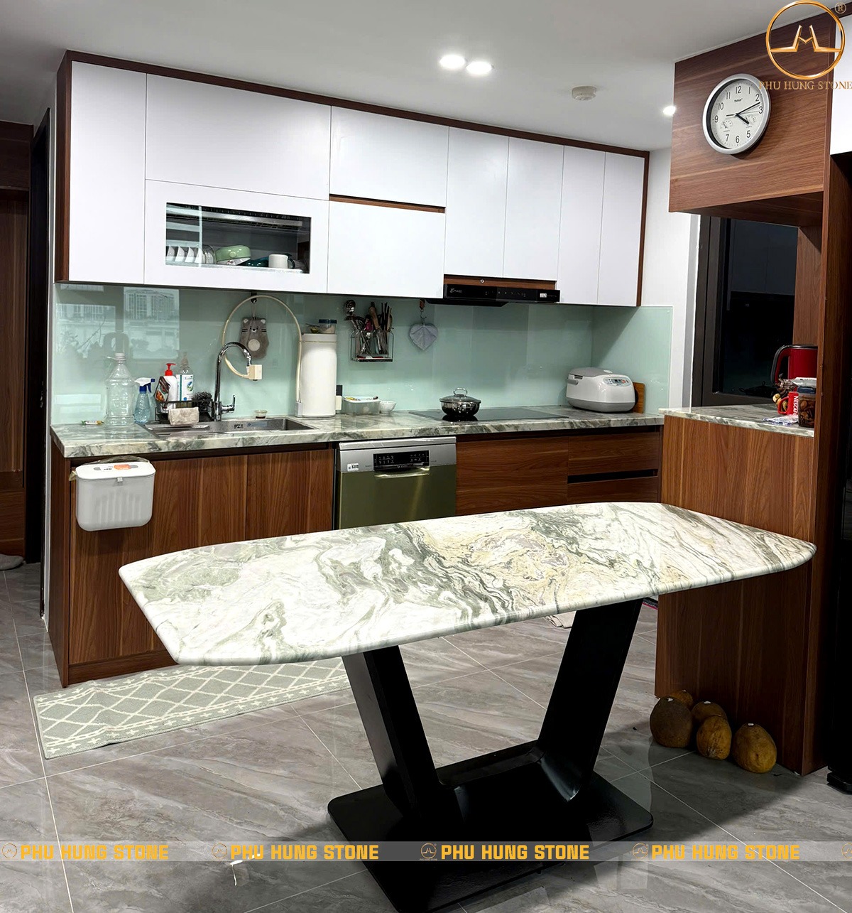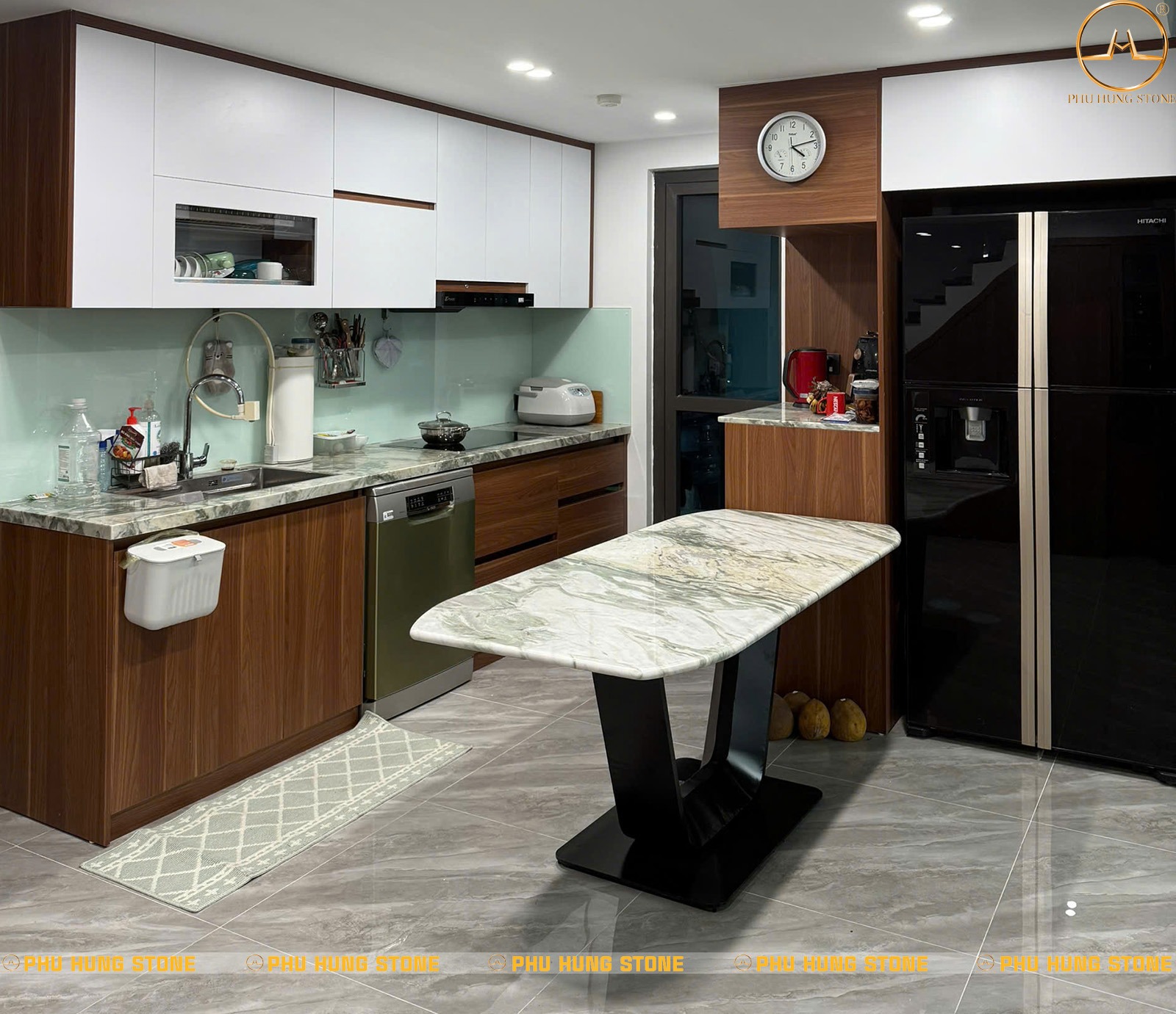 2- Phú Hưng Stone cung cấp và thi công đá ốp bếp và mặt bàn ăn